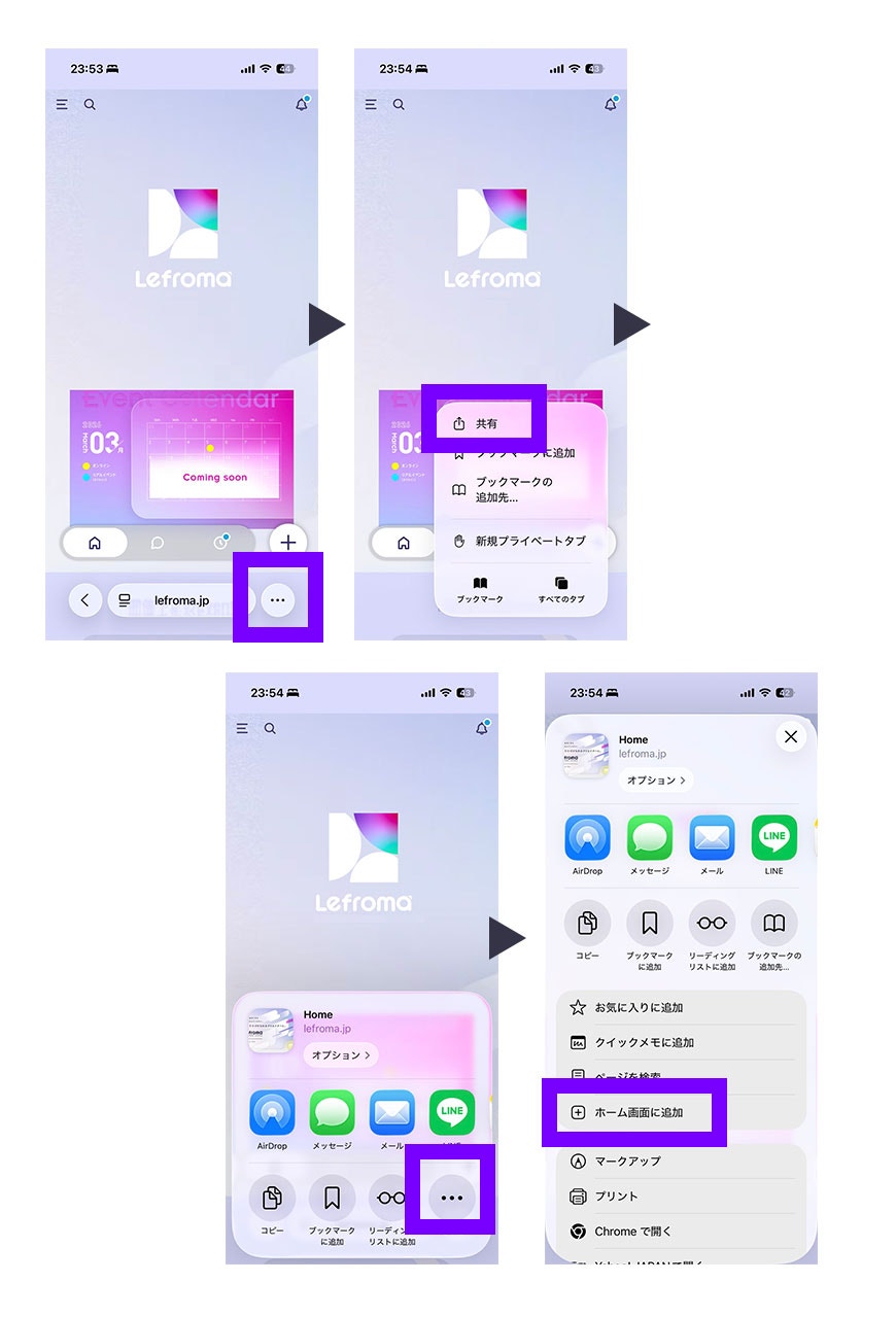 5「ホーム画面に追加」をタップすると、ホーム画面にレフロマのアイコンが表示されます